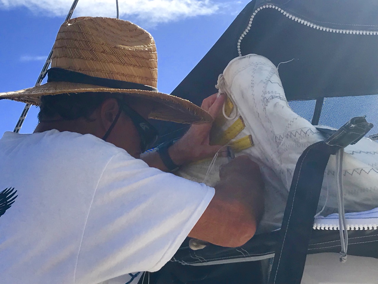IMG_3091 May 9, 2019 1280 × 960 Cuba All sails need full sun protection and our clew didn’t have it and failed. Share this: Share on X (Opens in new window) X Share on Facebook (Opens in new window) Facebook Email a link to a friend (Opens in new window) Email Share on WhatsApp (Opens in new window) WhatsApp Like Loading...